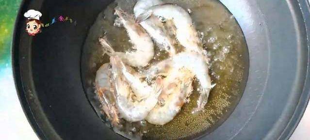 3;熱鍋倒油燒至5成熱時放入青蝦