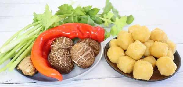 主料:芹菜、油豆腐、紅椒、香菇、薑