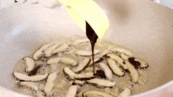 2.鍋中放油,加薑絲、香菇炒香。