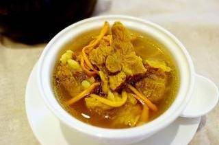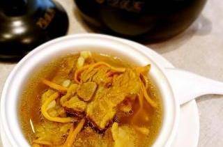 這裡使用是砂鍋煲制的蟲草花排骨湯。使用新鮮蟲草花最美味,營養價值高。