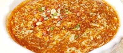 蝦米湯: 酥肉屑、香菜、原湯、雞蛋,黑木耳、肉紹子、二流欠、蔥、醋