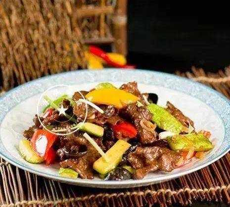 2. 將牛肉片走油,雲耳喂入底味,小瓜煸炒入底味;