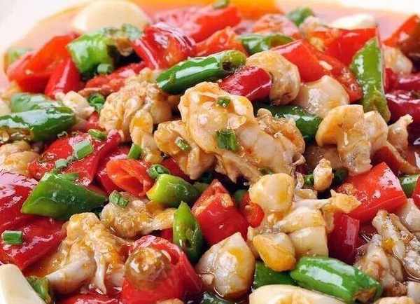 萵筍條100克,年糕條100克,紅燈籠泡椒400克,泡薑10克,大蒜片20克,藤椒油2克,泡菜汁400克,花雕酒5克,泡椒油100克,雞精10克,牛蛙1000克(剁塊,清洗幹凈,加入鹽3克,胡椒粉2克上漿,最後加入生粉10克拌勻,過油備用)將萵筍條,年糕飛水備用;另起鍋加入泡椒油,加入大蒜,泡薑,紅燈籠泡椒煸炒出香味,加入泡菜汁,花雕酒,雞精燒開,加入牛蛙小火煮三分鐘,加入藤椒油裝盤即可,