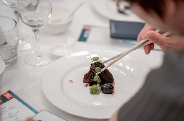 楊春暉大廚為本次活動特別定制瞭一道黑蒜牛小排,采用中西烹飪技法,結合文火慢燉與低溫慢煮,采用紅燒汁和蠔油調味,佐以黑蒜的發酵異香,呈現牛小排醬香入味、香糯厚軟的口感。來自歐洲的愛爾蘭牛肉油花分佈均勻,奶香味濃鬱,搭配寶塔菜,色味俱佳。這道菜以中國傳統菜為基礎,有根、有本、有源,展現瞭新國菜在傳承基礎上,兼收並蓄,融通多元,並融合東西方美學,形成當代美學的中式表達,體現中西文化融合的時代特色。