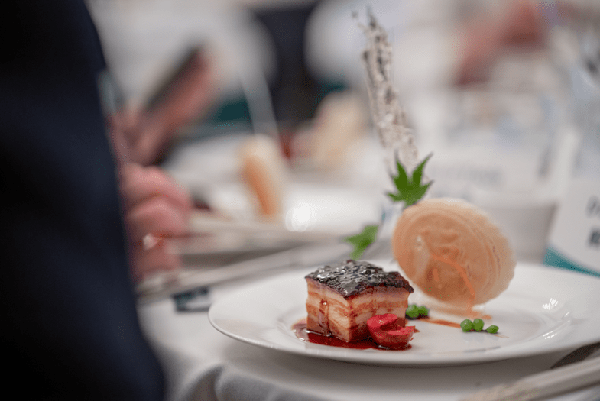 甄建軍大廚使用傳統工藝,制作瞭一道糟汁肉方。“糟汁肉方”是一道典型的宮廷菜,是乾隆皇帝下江南時帶回宮的姑蘇名菜。姑蘇“四大名肉”有:東坡肉、糟汁肉、櫻桃肉、蘇造肉。甄建軍大廚所做的菜品就是其中的糟汁肉。這道菜選用上好的歐洲愛爾蘭豬五花,經過低溫醃制、高溫油炸、用糟汁等一起蒸、收汁、以及低溫保存等前後三天的時間,才得以原汁上火收㸆至成品。這道菜色澤金紅,糟香濃鬱,唇齒留香,軟糯鮮香。這道菜秉承瞭中國傳統美食文化,結合愛爾蘭優質豬肉,呈現出中西合璧的美味佳肴。
