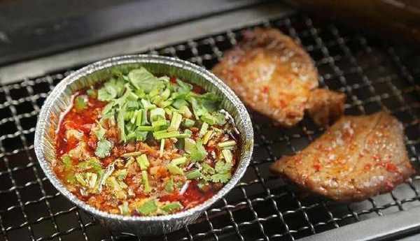 在火鍋裡燙豬腦,店傢都會把一個小方盒子掛在鍋簷上,便於抓取,而烤腦花一般是盛在小錫紙碗裡,麻辣口味配上細膩的口感,十分的過癮。