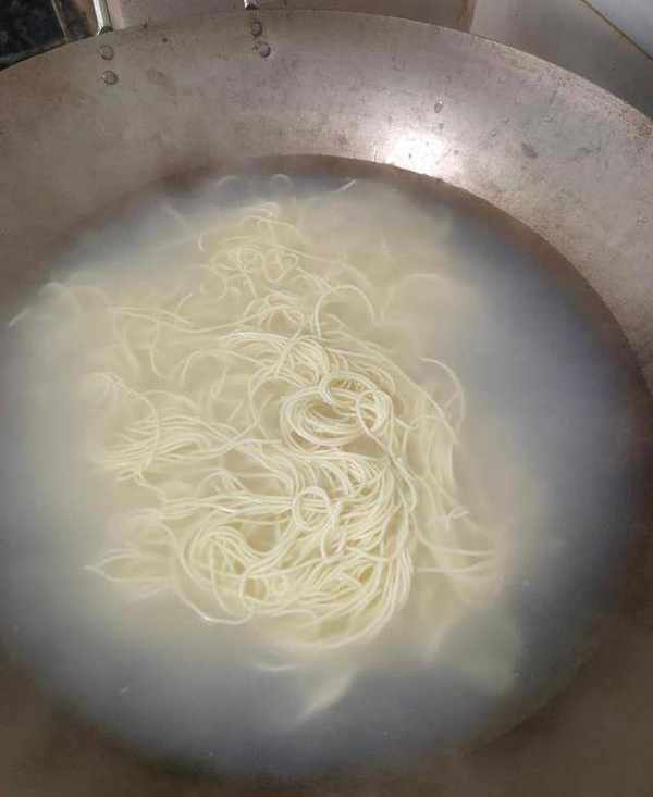 1.市場上買的生面,鍋裡面加水,燒開後放一邊備用,再加水等水開後放入面條煮兩分鐘即可,撈起來放入漏勺,瀝幹水分,再放入涼開水裡面冷卻。