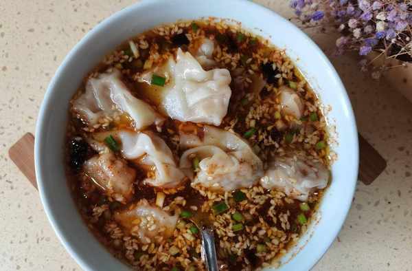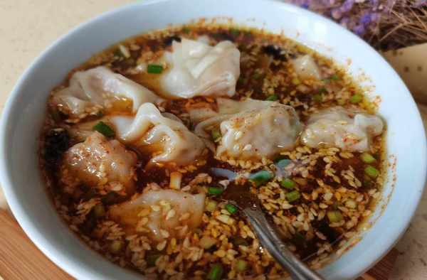 我們一般去小吃街,都會看到餛飩攤,但是賣的餛飩裡肉餡特別少,吃的一點都不過癮。還不如在傢包餛飩,餡料足,吃的又過癮,想吃什麼湯汁的餛飩就做什麼樣的。我個人口味偏辣,所以做瞭一碗酸辣餛飩,酸辣可口特開胃。