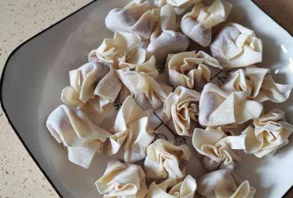 3、用筷子取一點拌好的肉餡放入餛飩皮的中間,然後用虎口一捏或者根據自己經常包的方法包起來就可以瞭。我一般一次性會多包一些,然後放入冰箱冷凍,想吃的時候再拿出來,很方便。