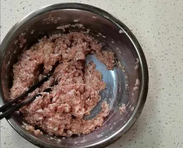 1、豬肉洗凈剁成肉餡;藕洗凈去皮攪拌成碎丁,然後放入肉末中;小蔥洗凈切成蔥花備用。
