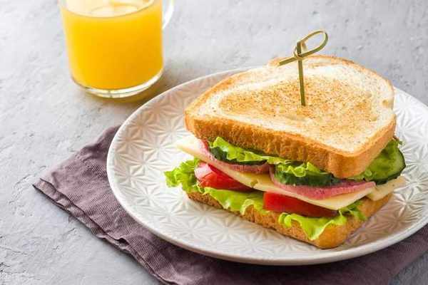 全麥面包、生菜、火腿、番茄、芝士、黑胡椒粉、橄欖油