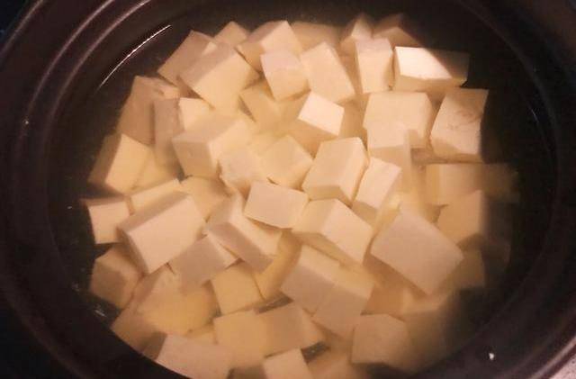 第二步:然後煮豆腐,但是不需要煮豆腐。開水隻需要除去豆腐的豆腥味。