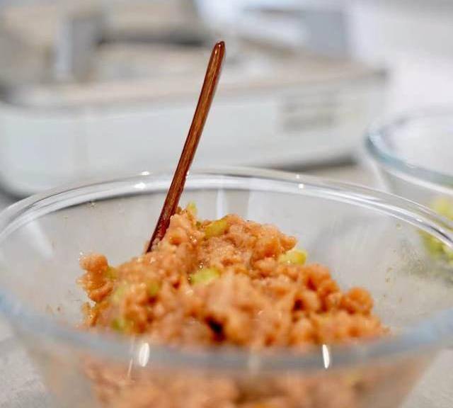 第4步、放入新膳肉,加鹽、黑胡椒、檸檬汁、醬油醃制。