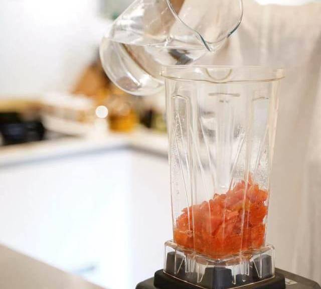 第6步、脫皮後放入料理機中,加少許水打成番茄醬。