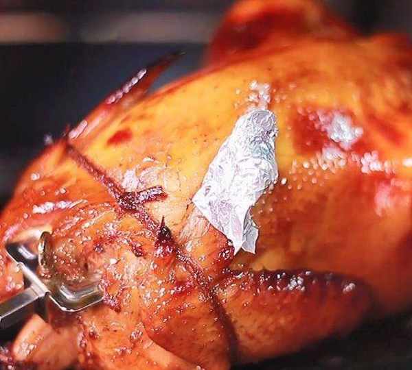 第6步、烘烤上色之後,可以在雞尖上裹上一層錫紙,避免烤焦。