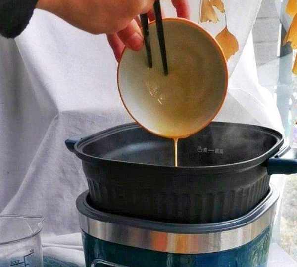 第7步、煎豆腐同時,另起鍋加水燒熱倒入淀粉糊。