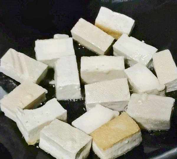 第4步、熱鍋涼油,油熱放入臭豆腐。