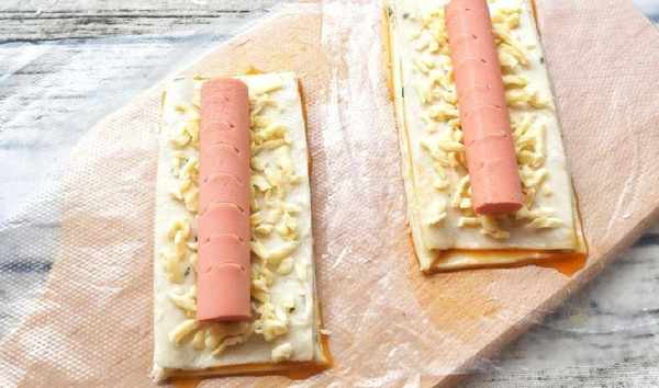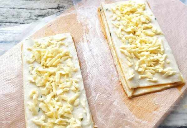 5同樣的方法再做好另一份,然後在分別在表面輕輕劃-刀(便於放火腿)撒上滿滿的芝士碎