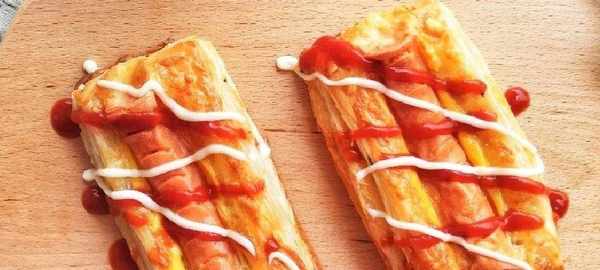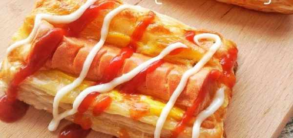 9出爐後裝飾上番茄醬和沙拉醬就完工啦!看著都好有食