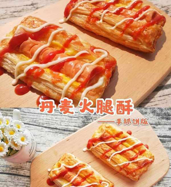 1將手抓餅切成方形,切掉的四邊留著備用