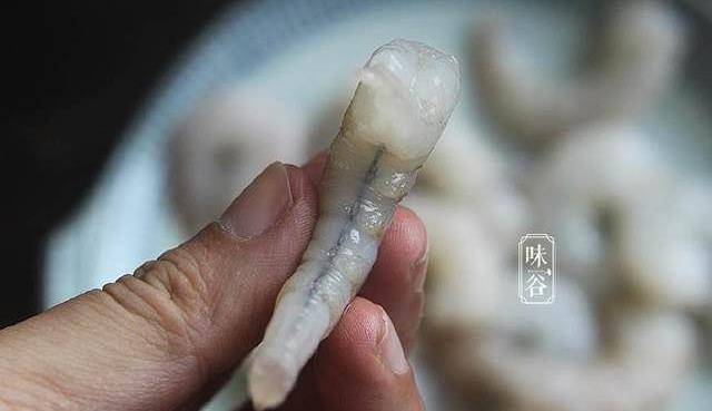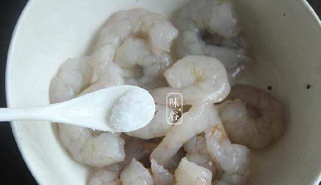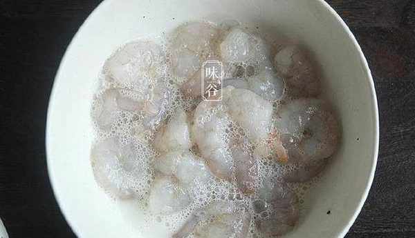 1、將蝦仁解凍清洗幹凈,挑去蝦背面和腹部的黑線;