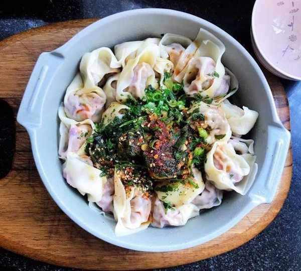 原料:蝦仁、鮮肉、莧菜、小蔥、香菜、餛飩皮、油、鹽、五香粉、薑粉、蠔油、醬油。