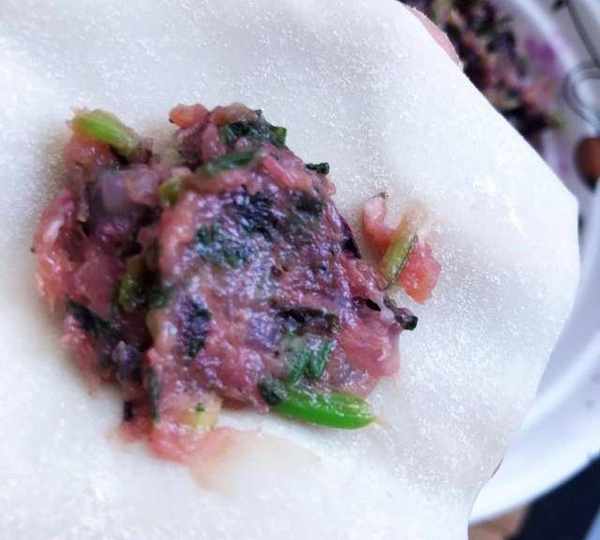 第7步、放入莧菜蝦仁餡包成自己喜歡的樣子。
