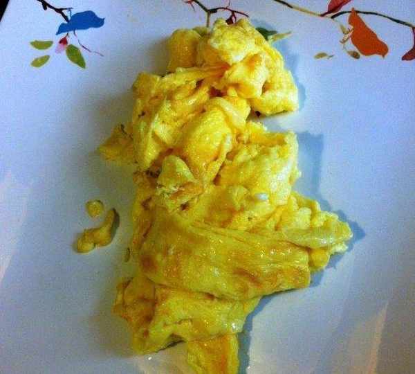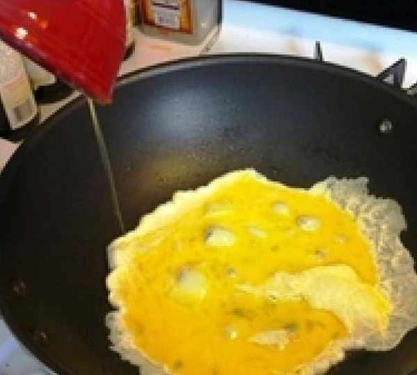 第3步、熱鍋加入少許色拉油炒蛋。不要炒太長時間。