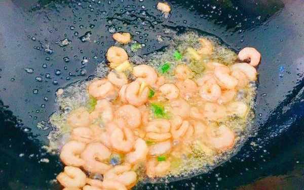 步驟4:開始烹飪油,並在油溫達到60%時將蝦炒。用高溫快速攪拌,使蝦在最短的時間內快速加熱。這將使蝦的味道更好。一些。