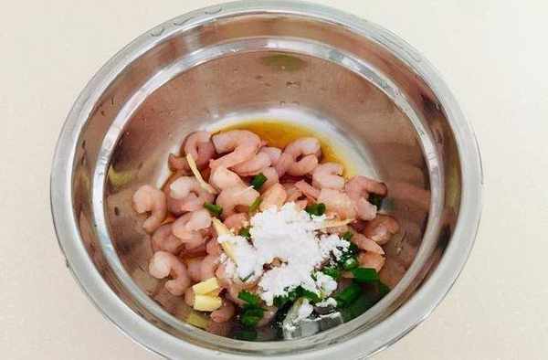 步驟3:將蝦與料酒,大蔥,薑,醬油,淀粉一起攪拌均勻,然後醃制。這將使蝦的味道更好。