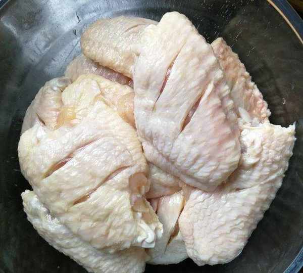 第1步、準備好雞翅,劃上花刀,放入碗中。