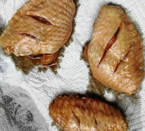 第9步、用廚房紙吸幹雞翅上的水份。