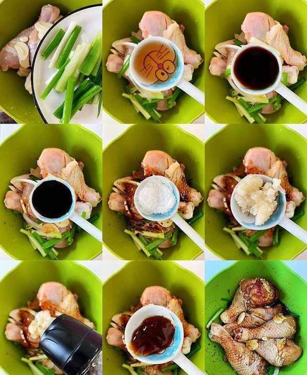 琵琶腿5個,小蔥2根,2勺蒜末,1勺老抽,2勺生抽,2勺料酒,1勺蜂蜜,1勺黑胡椒,1勺蠔油。