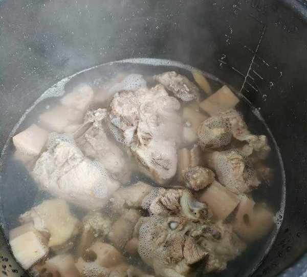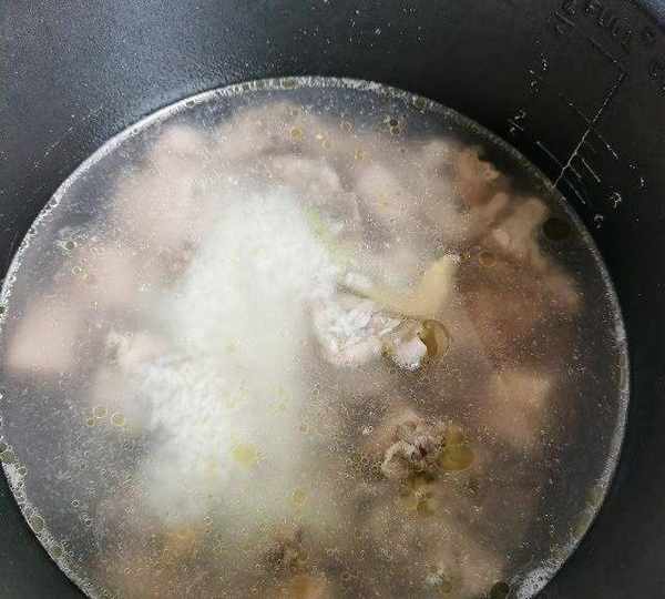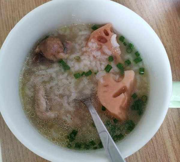 原料:雞豬骨頭、蓮藕、大米、薑、蔥花、鹽、醬油。