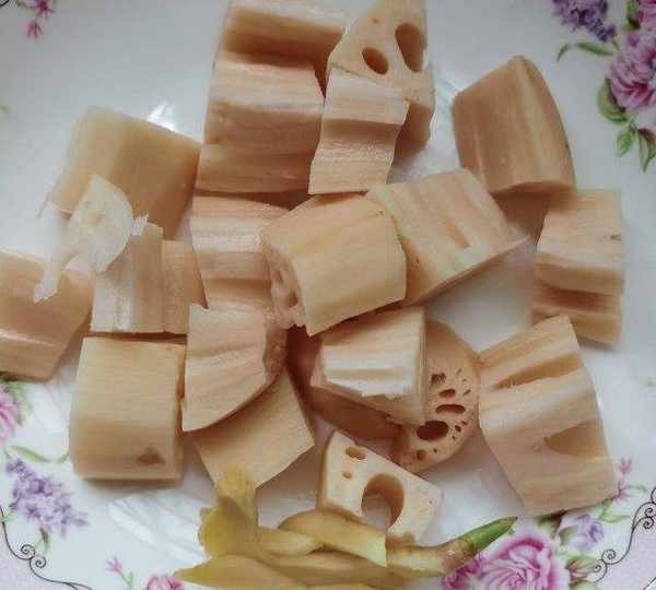 第1步、蓮藕去皮切塊,薑幾片。