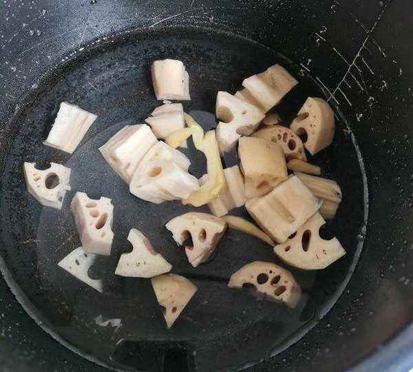 第2步、把蓮藕和薑下鍋煮。蓮藕煮久無所謂的。