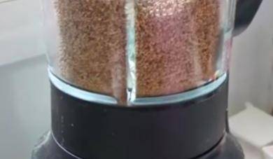 最後會看到芝麻越來越細膩,成液體流線狀。