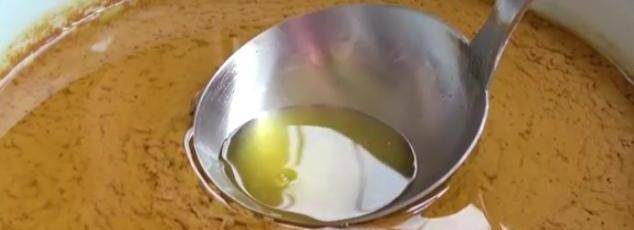 找大盆把芝麻醬倒入盆內,這就是純正的芝麻醬。此時的芝麻醬香味四溢,滿屋都是芝麻香。