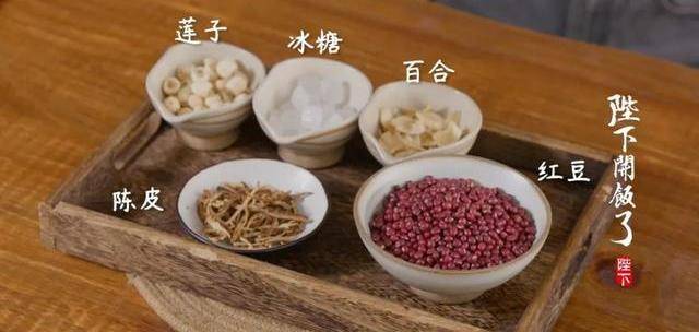 紅豆200g、蓮子30g、百合10g、冰糖適量、陳皮適量。