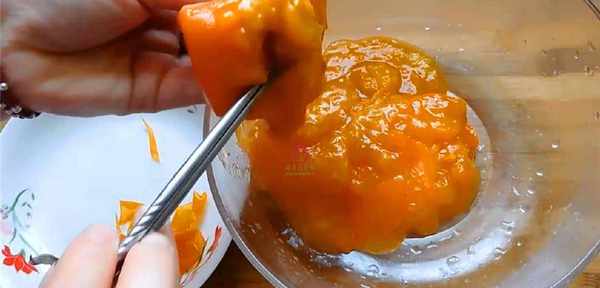 1;先將柿子洗凈去皮,放入容器中搗成泥