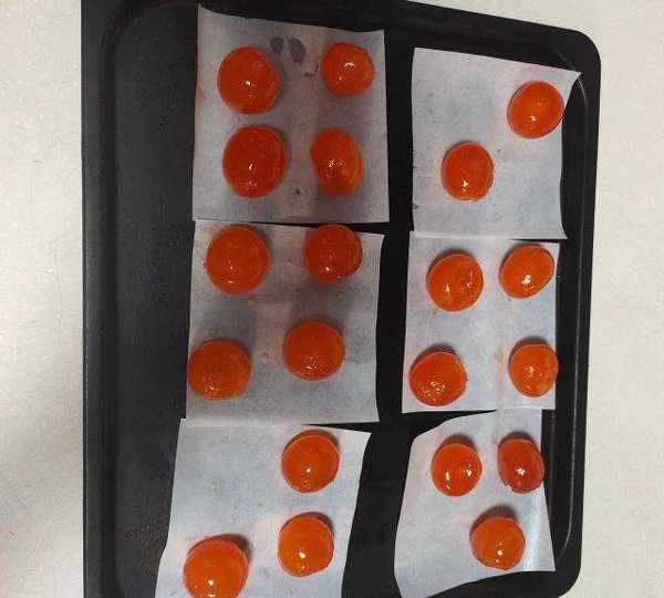 第1步、咸蛋黃表面噴高度白酒,放入烤箱烘烤5分鐘。