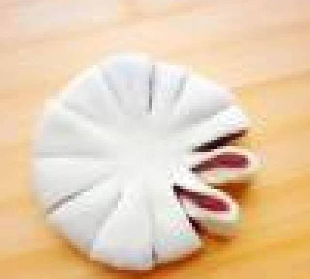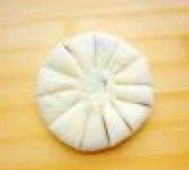 第16步、用剪刀在圓餅上剪12刀。做成12片“花瓣”。