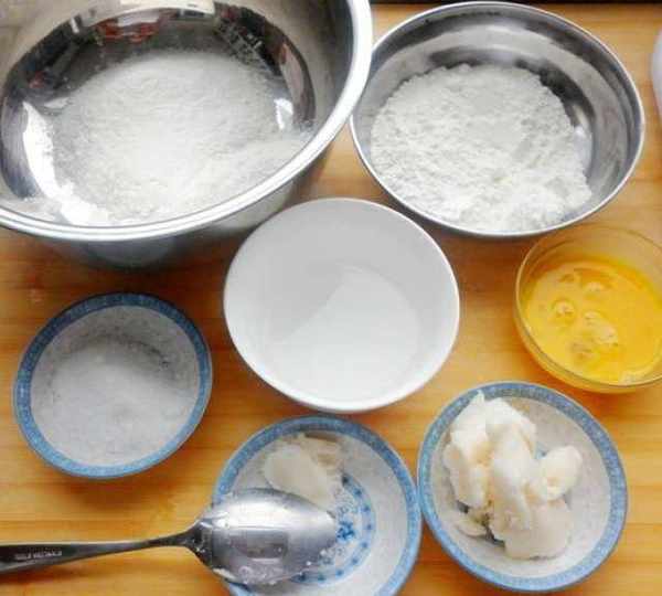 第4步、制作油酥:把面粉80克,豬油50克混合並不斷揉搓,直到成團。