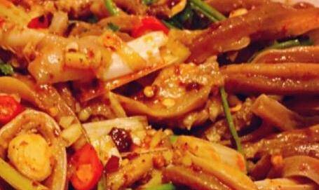 為大傢介紹一個紅油肚絲的做法。首先準備豬肚半隻、金針菇30克,大蔥半根、薑5片,黃酒2大匙、鹽4大匙,辣椒面20克、色拉油適量