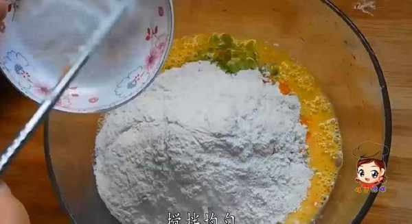 3;倒入面粉,攪拌均勻,撒少許鹽