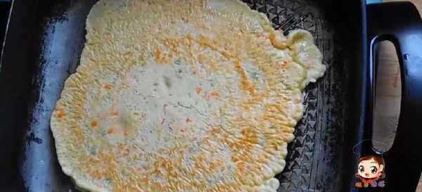 4:熱鍋倒少許油,油熱後淋入蛋糊