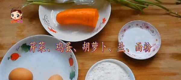 芹菜、雞蛋、胡蘿卜、鹽、面粉