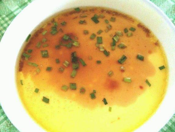 燉雞蛋糊:雞蛋剝殼打散,加入一點點的鹽、味精、黃酒繼續打散,加入涼開水拌勻備用。鍋內加入清水煮開,放上上面的蛋液隔水蒸10分鐘,悶3分鐘。開鍋後在蛋糊上倒入一點點的醬油,放上一點點的豬油,撒上蔥花即可。