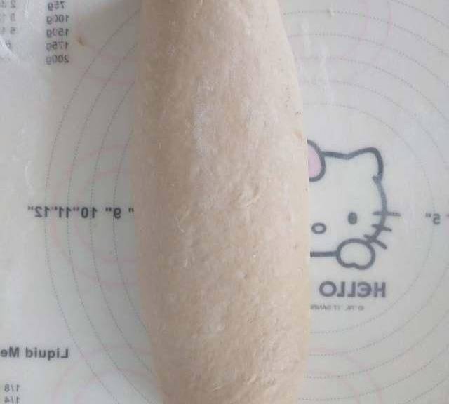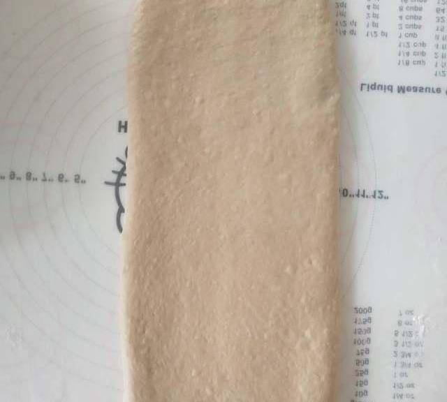 第9步、再次搟開,寬度不超過土司盒的長度,長約35厘米左右。