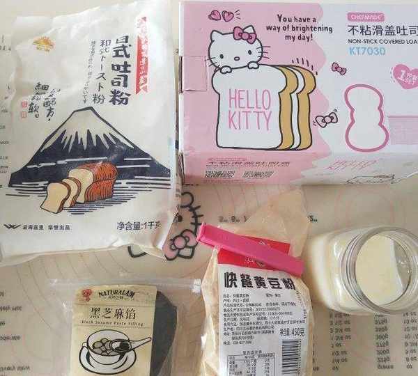 原料:湯種材料、金山日式土司粉、水、主面團、湯種、黑糖粉、幹酵母、鹽、熟黃豆粉、無糖豆漿、黃油、那秋之林黑芝麻餡。